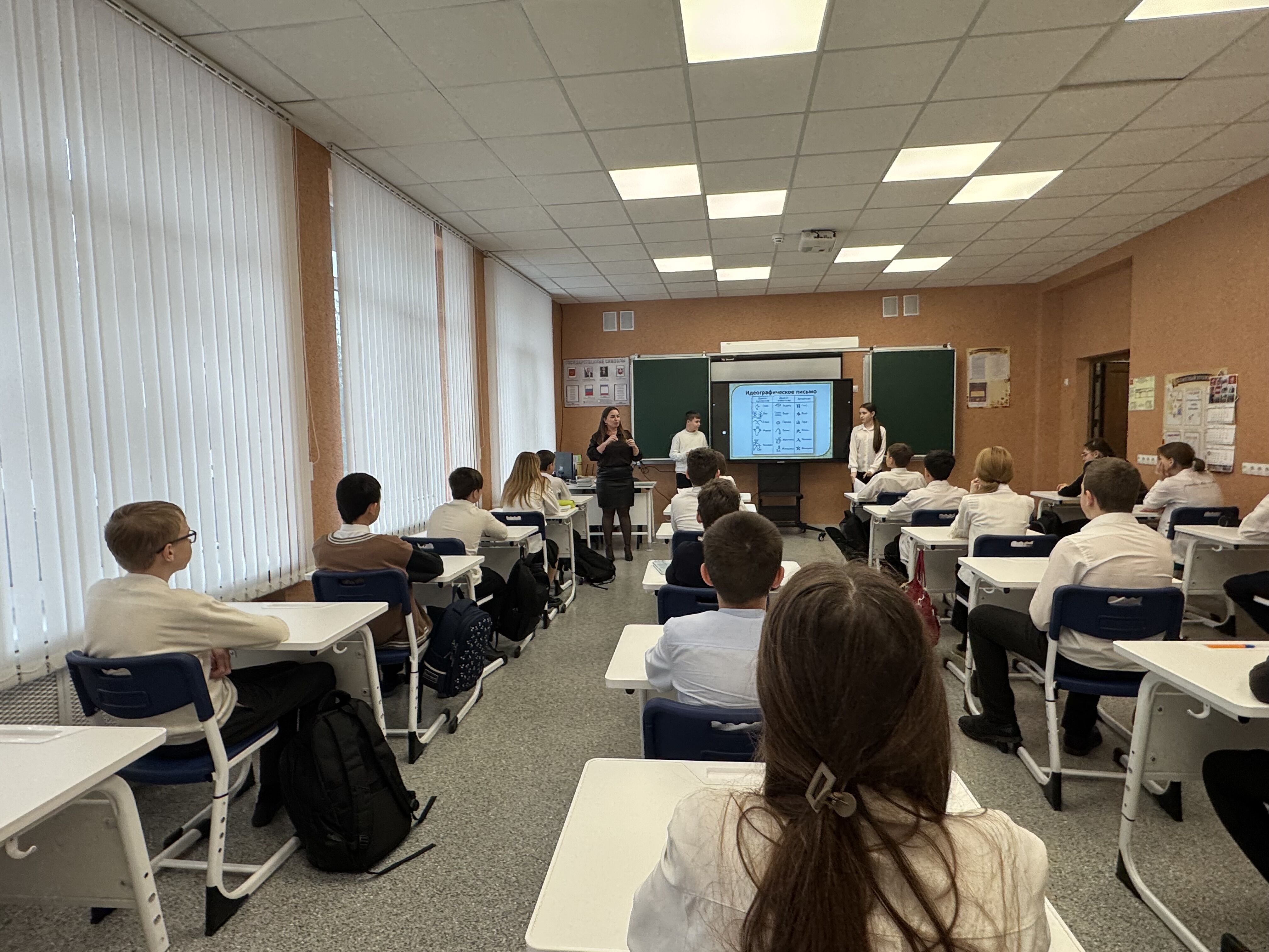 На большой перемене 02.02.2026 года, для обучающихся 5-11 классов, учитель русского языка и литературы Королева А.В. Провела интерактивное мероприятие «Из истории русского языка».
