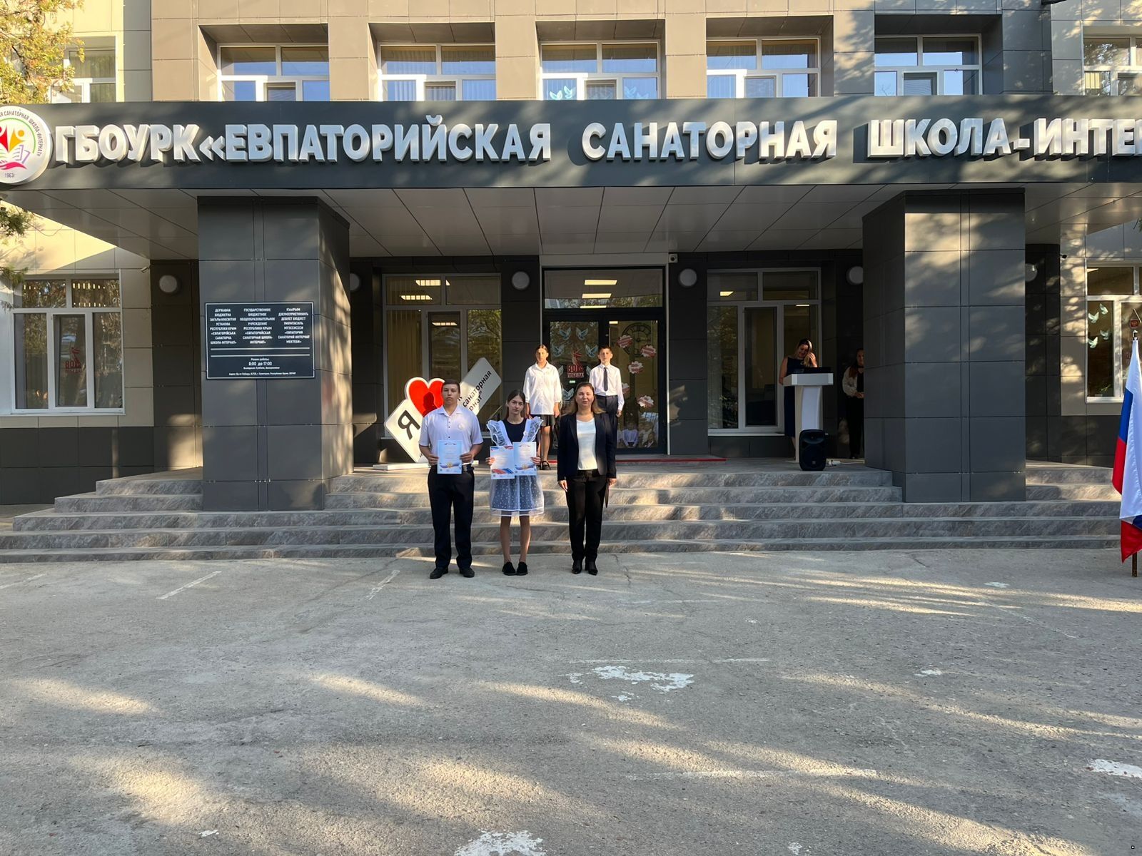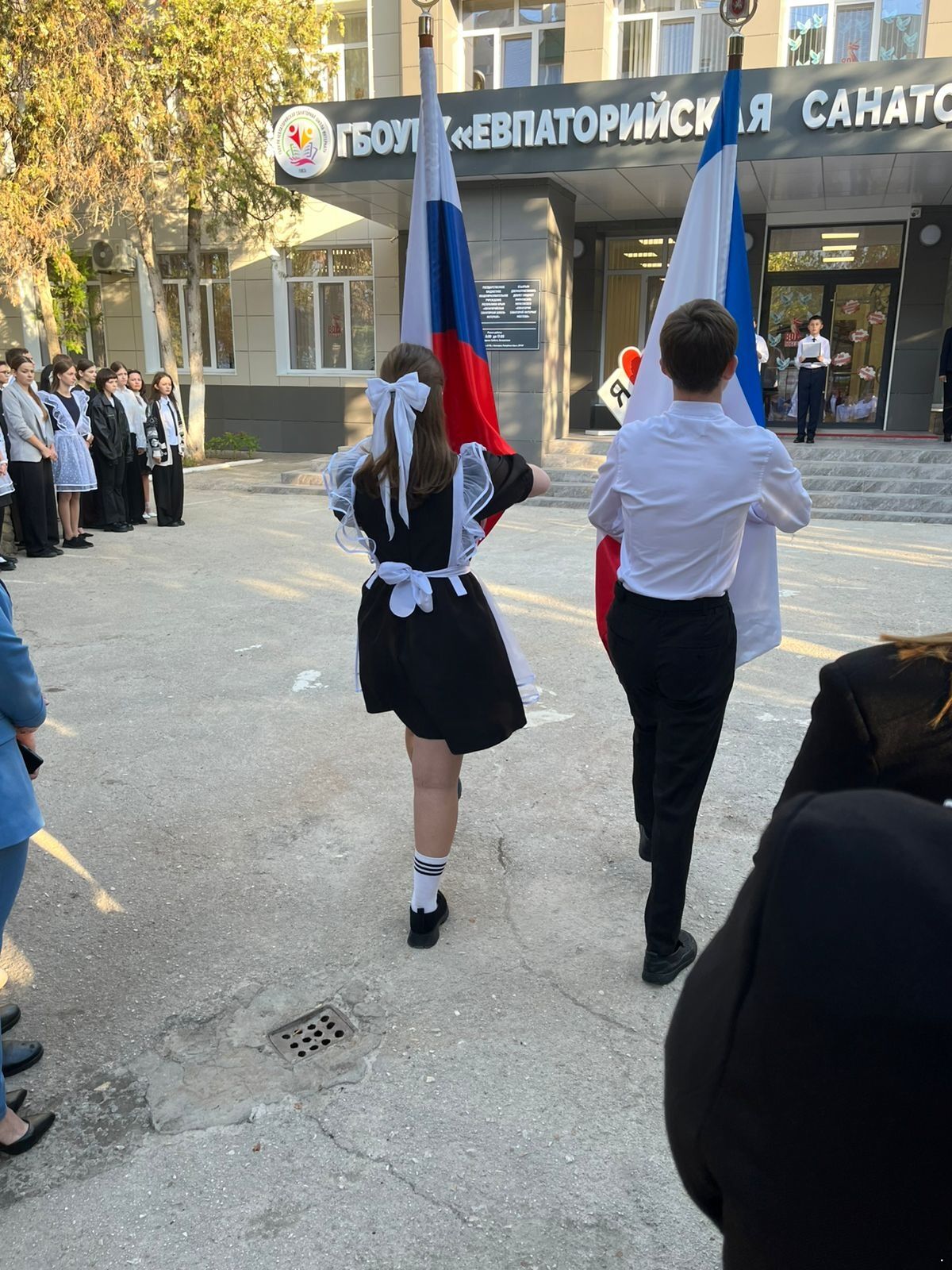 22 сентября 2025 г. в нашей школе-интернате прошла традиционная линейка, которая началась с выноса флагов Российской Федерации и Республики Крым и исполнения гимнов. Право внести флаг предоставлено обучающимся 9 класса Капишену Кириллу и Юрьевой Виктории.