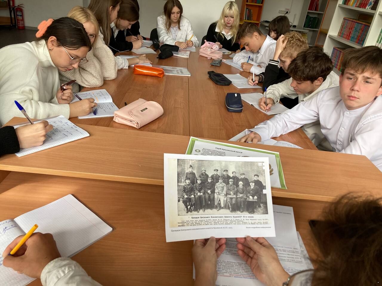 Обучающиеся из девятого класса 14 октября посетили школьную библиотеку, где прошёл интересный урок, посвящённый созданию Крымской АССР 18 октября 1921 года. Они узнали много важного о событиях прошлого Крыма и основных моментах того периода. Учительница Гладчук Ольга Анатольевна рассказала ребятам важные факты из истории, а библиотекарь Лейбенко Вита Павловна показала красивую презентацию и устроила тематическую выставку. Она же увлекательно поведала о символике региона, включая герб Крымской АССР и структуру власти того времени.