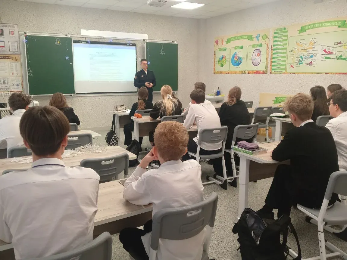 В разговоре с обучающимися инспектор затронул следующие темы: «Административные правонарушения и преступления среди несовершеннолетних», «Профилактика нецензурной лексики среди подростков». В своей беседе инспектор коснулся вопросов ответственности за совершение таких преступлений, как кража, грабеж, причинение телесных повреждений.
