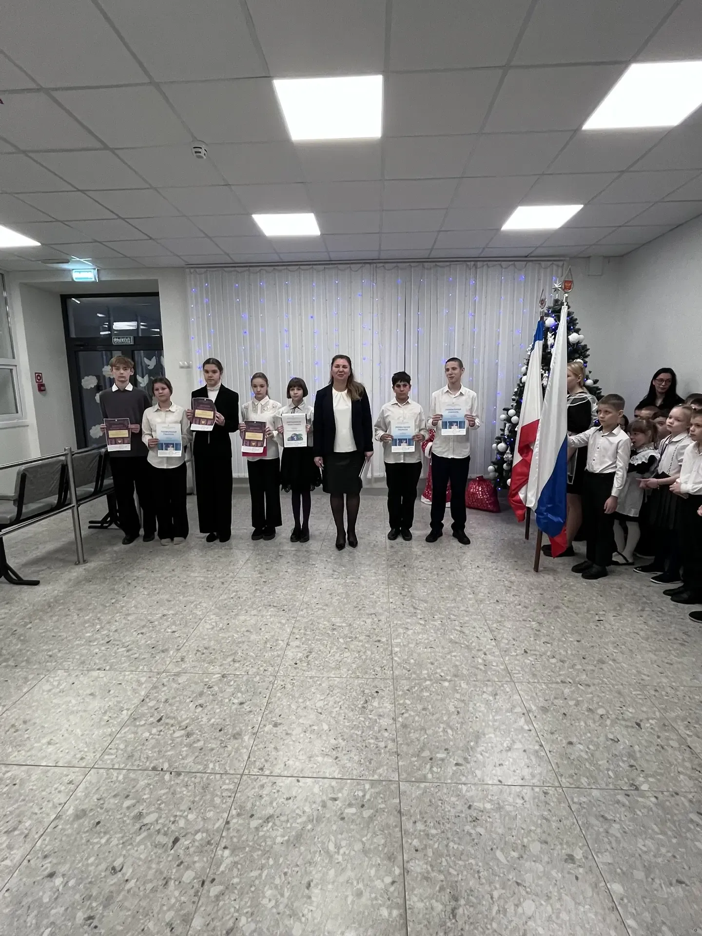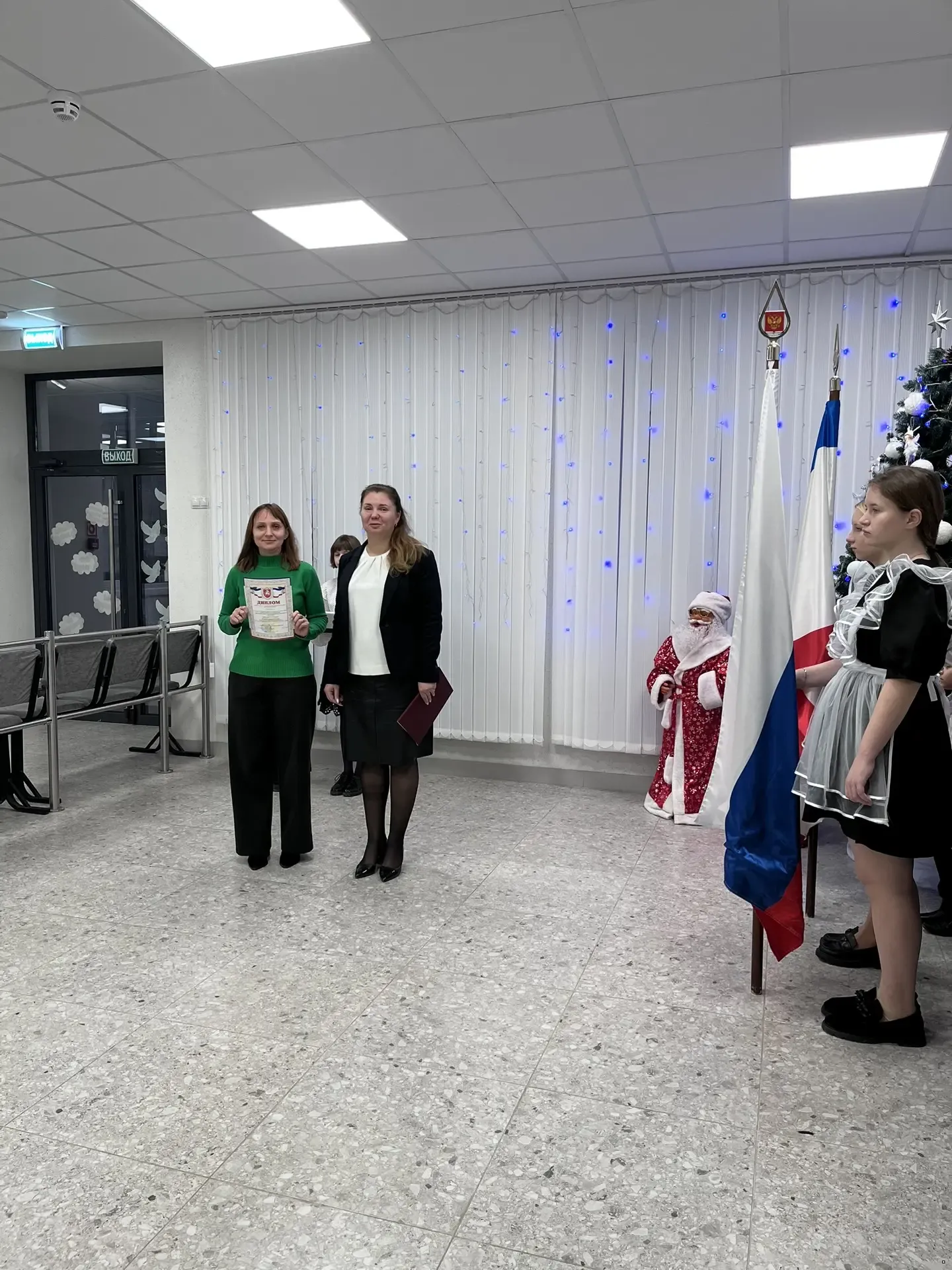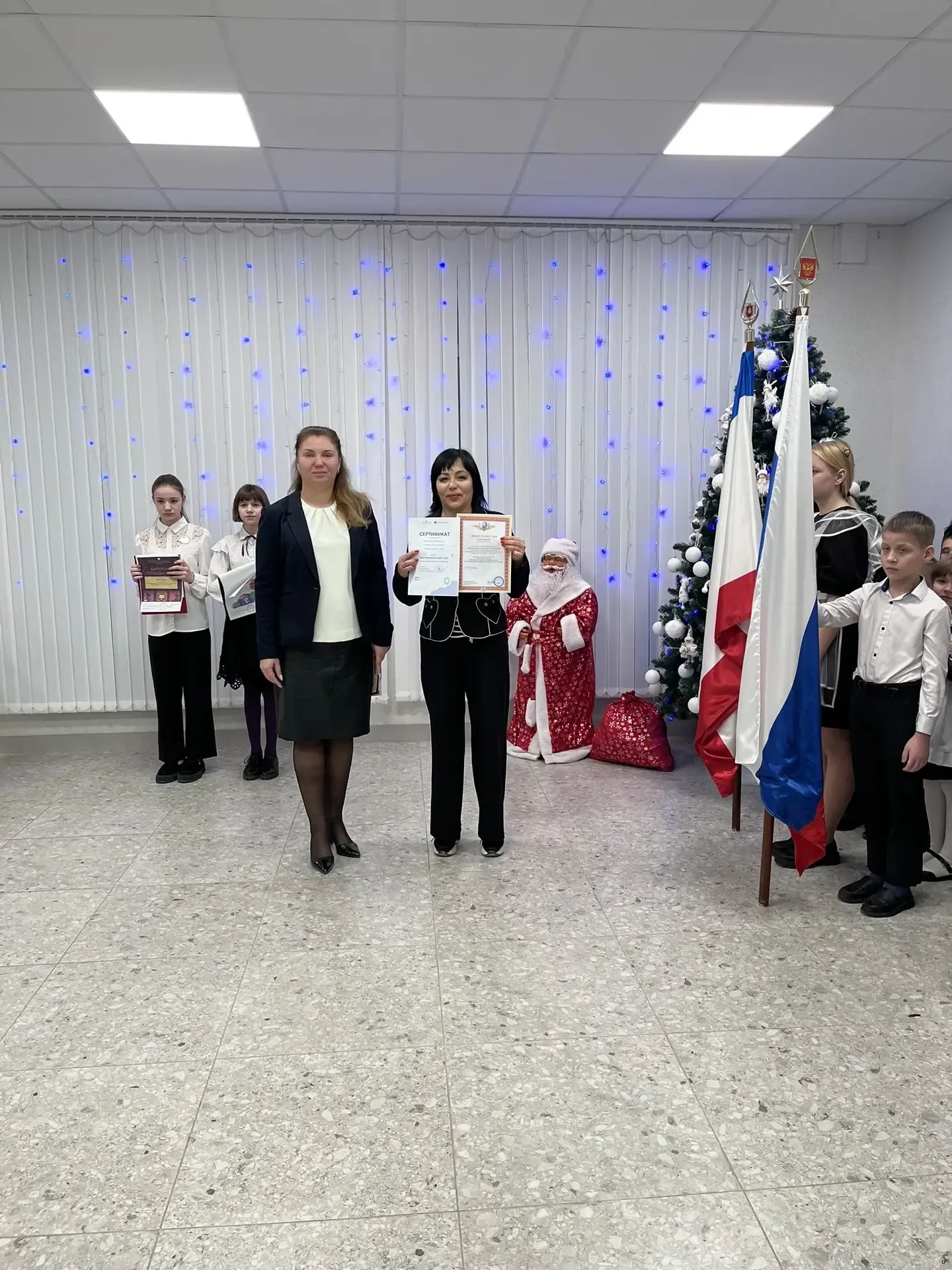 Новый 2026 год в нашей школе-интернате начался с традиционной линейки, посвященной выносу флагов Российской Федерации и Республики Крым и исполнению гимнов. Право внести флаг предоставлено обучающимся 9 класса Юрьевой Виктории и Коротковой Наталии. На линейке директор школы Анна Юрьевна Абдувелиева поздравила всех с наступившим Новым годом и Рождеством. Сегодня были вручены дипломы победителей и участников Всероссийской онлайн-олимпиады "Безопасный интернет" для обучающихся 1-11 классов, также вручен Диплом Финалиста I степени Регионального этапа XII всероссийского конкурса "Лучшая инклюзивна школа - 2025".