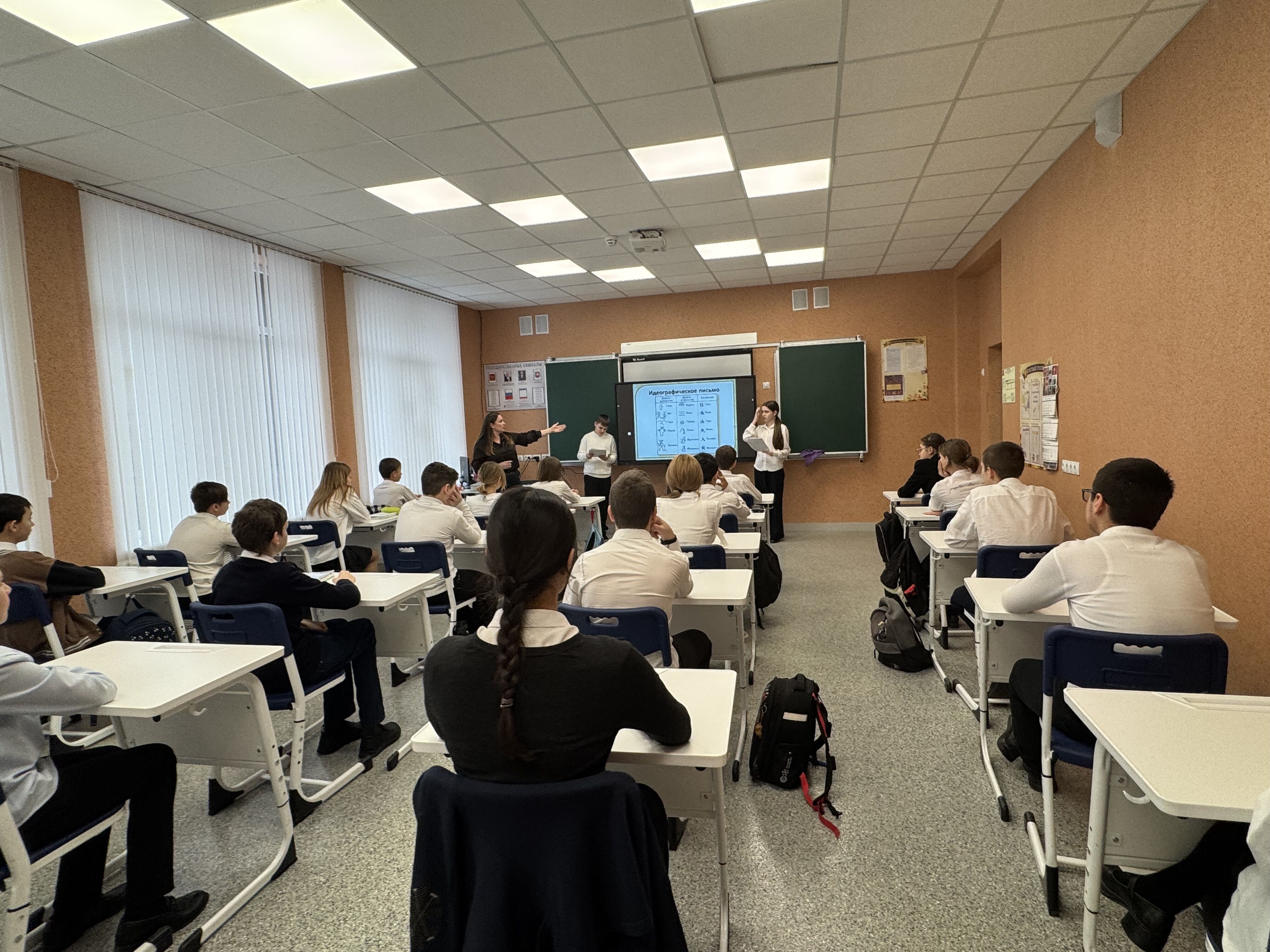 На большой перемене 02.02.2026 года, для обучающихся 5-11 классов, учитель русского языка и литературы Королева А.В. Провела интерактивное мероприятие «Из истории русского языка».
