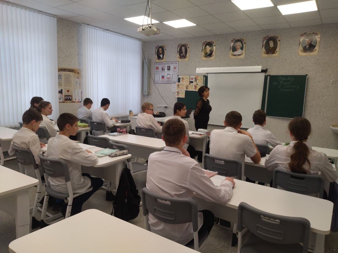 состоялся открытый урок по английскому языку в 7 классе на тему: «Кто есть кто?» в рамках недели предметов филологического цикла. Учитель английского языка Решидова Э.Н. использовала ИКТ для объяснения внешности человека, видео-материалы с преобразованием внешности человека. Ребята с помощью различных активных форм работы: работа с карточками, задания на соответствие, рисунок внешности по описанию изучали новую тему. На уроке была выполнена работа по аудированию, работа по изучению новых слов. Урок проведен на высоком методическом уровне, ребята остались довольными своими достижениями. Молодцы!