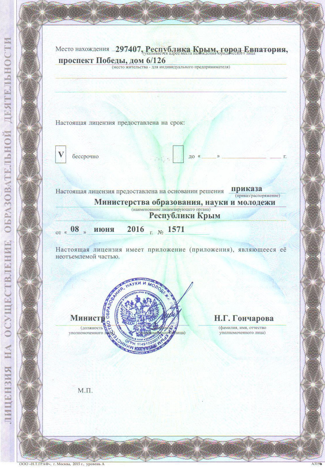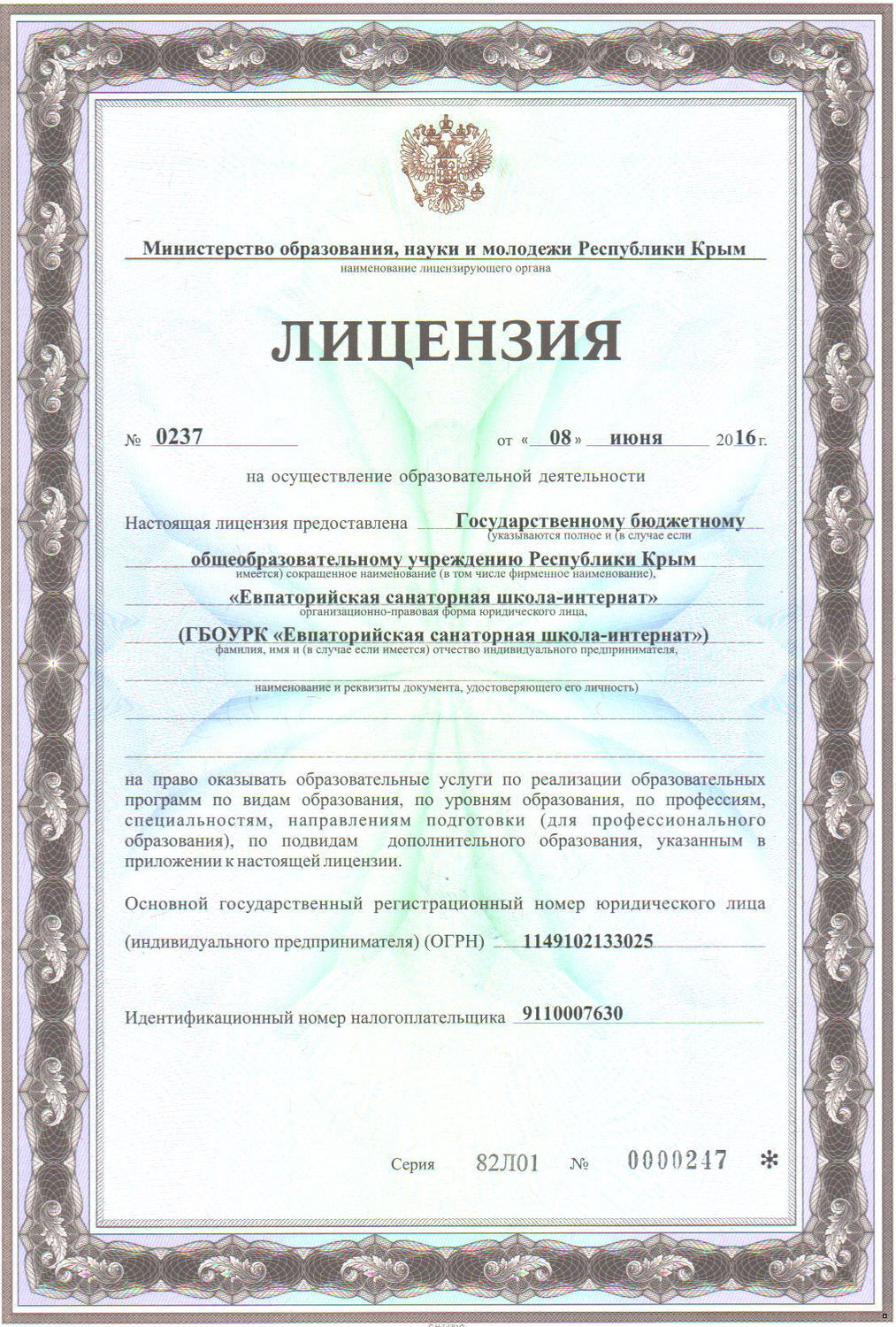 ЛИЦЕНЗИЯ на осуществление образовательной деятельности